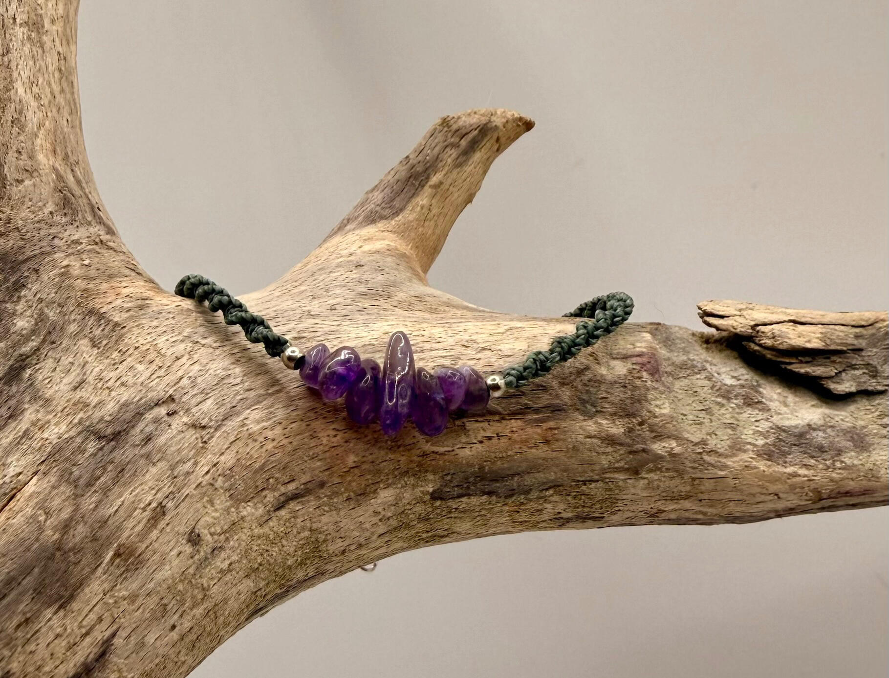 Der Amethyst ist ein Edelstein, seit jeher mit Ruhe, Klarheit und spiritueller Tiefe verbunden wird. Seine violette Farbe wirkt zugleich sanft und kraftvoll und erinnert an eine stille, beruhigende Abendstimmung.Er wird oft mit Themen wie innerer Balance, Achtsamkeit und mentaler Klarheit in Verbindung gebracht. Der Amethyst kann dich dabei unterstützen, zur Ruhe zu kommen, Gedanken zu ordnen und dich von innerem Druck oder übermäßiger Anspannung zu lösen. Besonders in Zeiten von Stress oder emotionaler Unruhe wirkt er wie ein beruhigender Begleiter, der dir hilft, wieder in deine Mitte zu finden.Gleichzeitig steht er für Bewusstsein und innere Entwicklung. Er lädt dich dazu ein, einen Schritt zurückzutreten, Dinge klarer zu betrachten und deiner Intuition mehr Raum zu geben. Dabei kann er dich unterstützen, alte Gedankenmuster loszulassen und mehr Vertrauen in deinen eigenen Weg zu entwickeln.Seine Energie wird oft als klärend, beruhigend und zentrierend empfunden. Der Amethyst begleitet dich dabei, innere Ruhe zu finden und mit mehr Gelassenheit und Klarheit durch deinen Alltag zu gehen.
