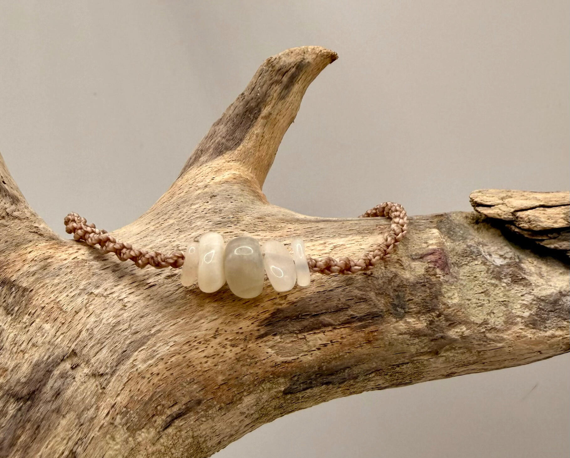 Der Mondstein ist ein Edelstein voller Sanftheit, Intuition und innerer Tiefe. Mit seinem schimmernden Glanz erinnert er an das Licht des Mondes - ruhig, geheimnisvoll und zugleich beruhigend.Er wird oft mit Themen wie Intuition, Weiblichkeit und emotionaler Balance verbunden. Der Mondstein kann dich dabei unterstützen, wieder mehr auf dein inneres Gefühl zu hören und dich mit deiner inneren Stimme zu verbinden. Gerade in Zeiten von Veränderung oder innerer Unruhe wirkt er wie ein sanfter Begleiter, der dir hilft, Vertrauen in den natürlichen Fluss des Lebens zu entwickeln.Gleichzeitig steht er für Zyklen und Wandel. Er erinnert dich daran, dass nicht immer alles gleich sein muss und dass Entwicklung in Wellen verläuft - ganz so wie die Phasen des Mondes. Diese Energie kann dir helfen, dich selbst achtsamer wahrzunehmen und dir die Zeit zu geben, die du gerade brauchst.Seine Ausstrahlung wird oft als beruhigend, ausgleichend und intuitiv stärkend empfunden. Der Mondstein lädt dich dazu ein, dich mit dir selbst zu verbinden, loszulassen und dich von deiner inneren Weisheit leiten zu lassen.
