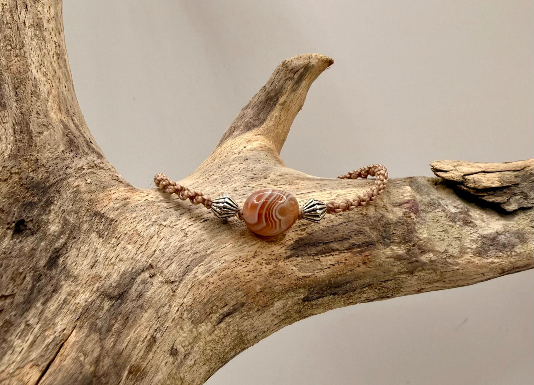 Der braune Achat ist ein Edelstein, der für Erdung, Stabilität und innere Sicherheit steht. Mit seinen warmen, natürlichen Farbtönen erinnert er an die Kraft der Erde - ruhig, tragend und beständig.Er wird oft mit Themen wie Halt, Ausgeglichenheit und Vertrauen verbunden. Der braune Achat kann dich dabei unterstützen, wieder mehr bei dir selbst anzukommen und dich innerlich zu stabilisieren. Gerade in unruhigen Zeiten wirkt er wie ein sanfter Anker, der dir hilft, dich zu sammeln und einen klaren Standpunkt einzunehmen.Gleichzeitig steht er für Schutz und Abgrenzung. Seine ruhige, gleichmäßige Energie kann dich darin stärken, dich nicht von äußerlichen Einflüssen aus der Balance bringen zu lassen und deinen eigenen Weg bewusst weiterzugehen.Seine Ausstrahlung wird oft als beruhigend, stärkend und zentrierend empfunden. Der braune Achat lädt dich dazu ein, dir selbst zu vertrauen, in deiner Mitte zu bleiben und Schritt für Schritt mit mehr Ruhe und Stabilität durchs Leben zu gehen.